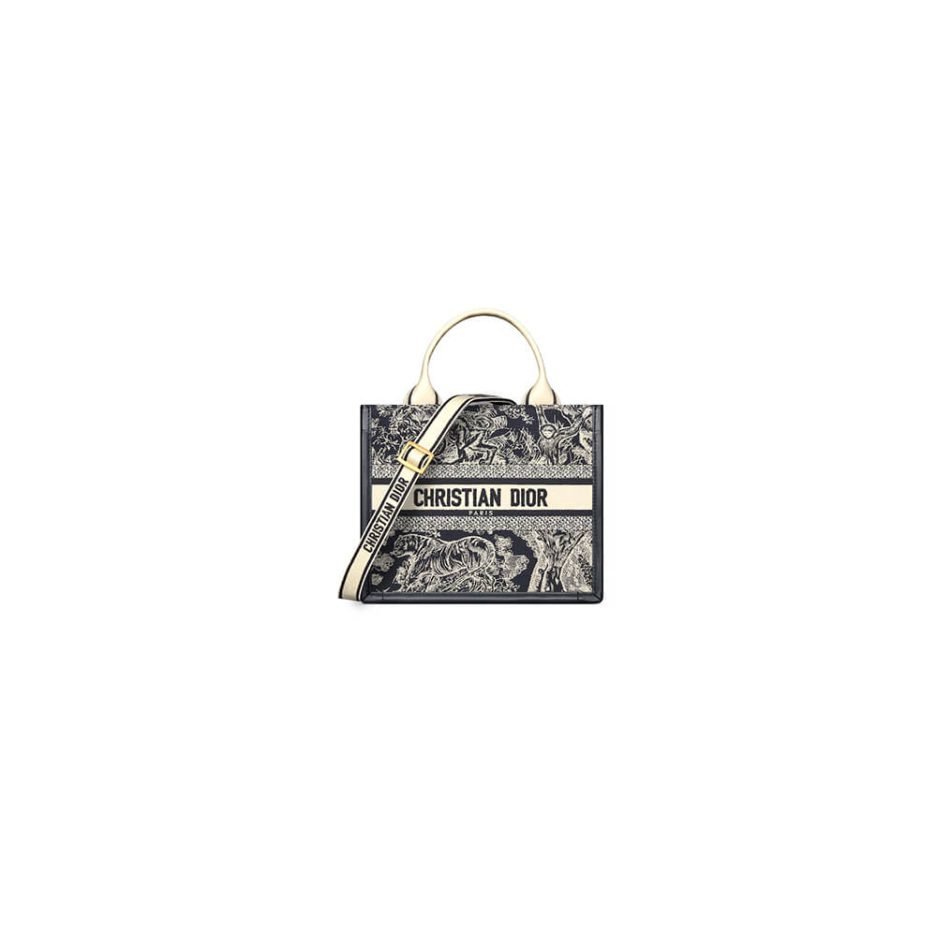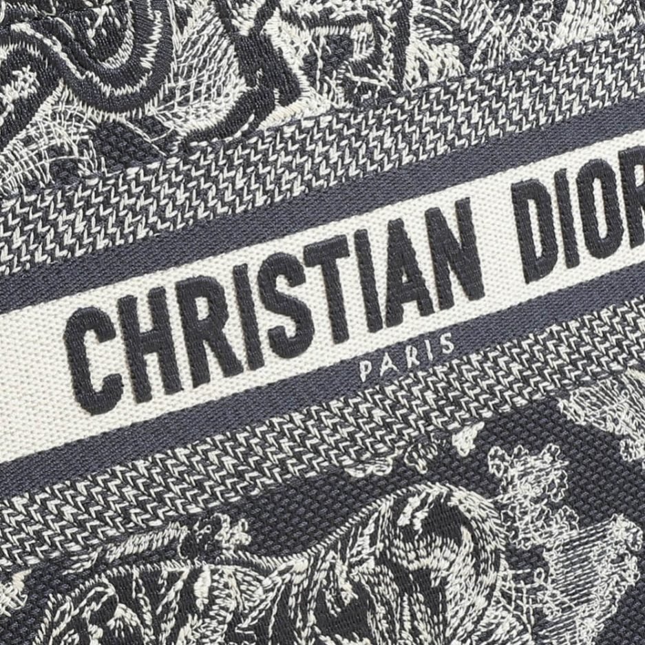 Blue and Ecru Toile de Jouy Reverse Embroidery and Blue Calfskin