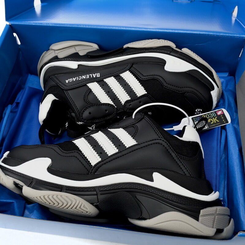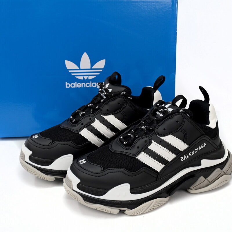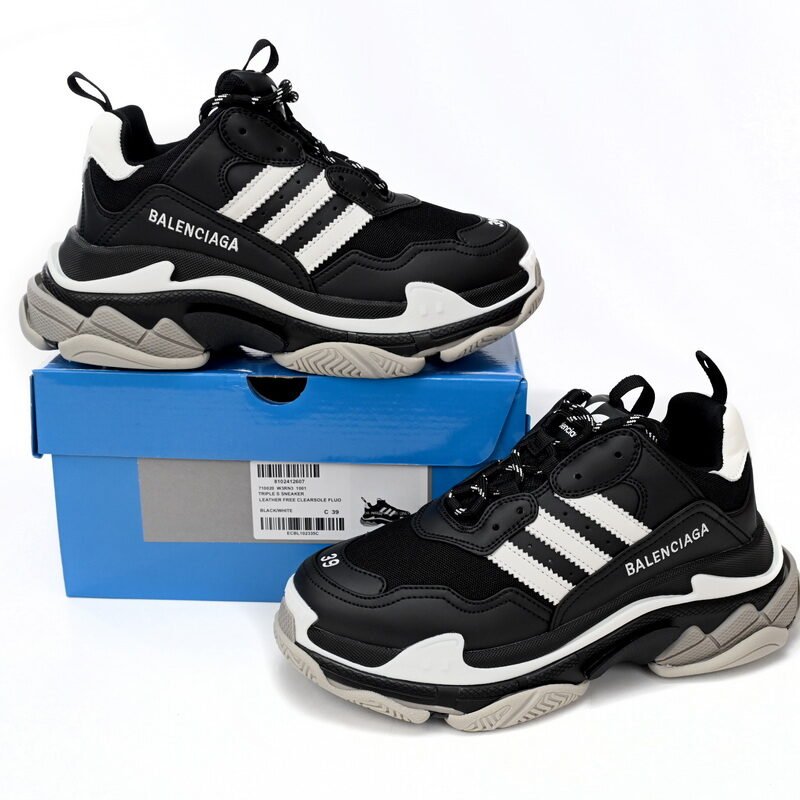 Pkstockx Adidas x Balenciaga Triple S Black And White Bars 712764 W2ZB2 1090