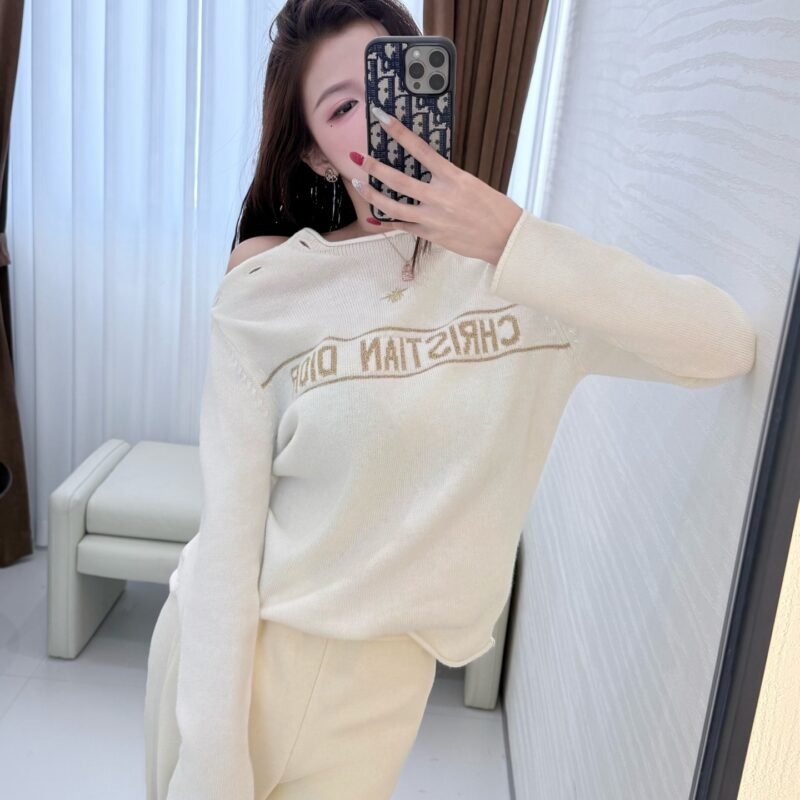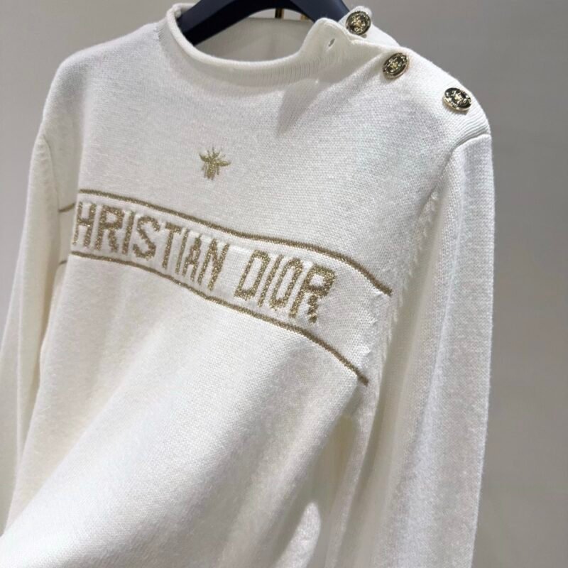 | Dior Sweater Ecru and Gold-Tone Cashmere-Blend Knit | 5A Master quality | Size: 36 38 40 | Shipping time:8-16 working days |