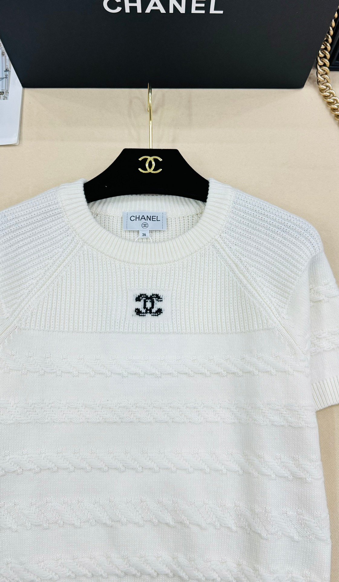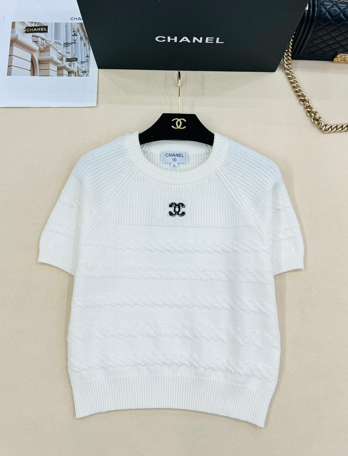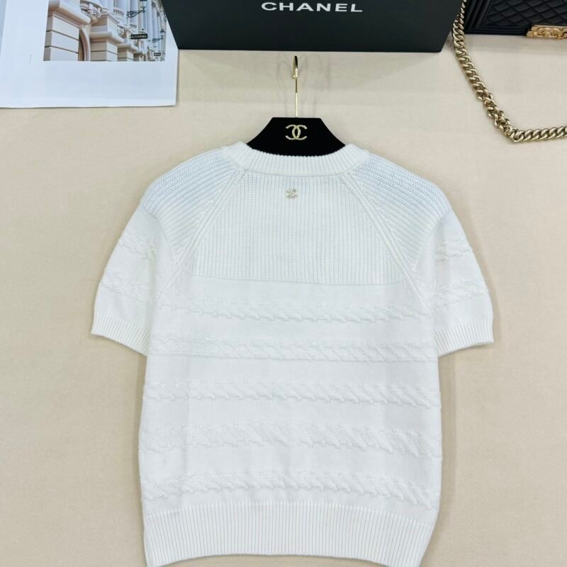 | CHANEL white short-sleeved knitted top | Mirror quality | Size:S M L | Shipping time:8-16 working days |