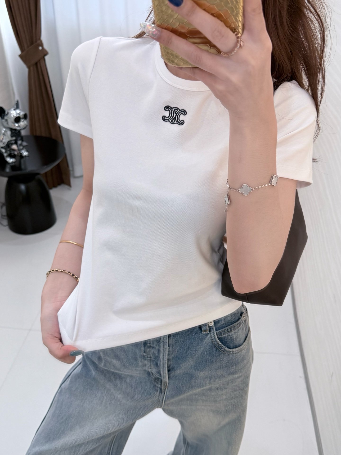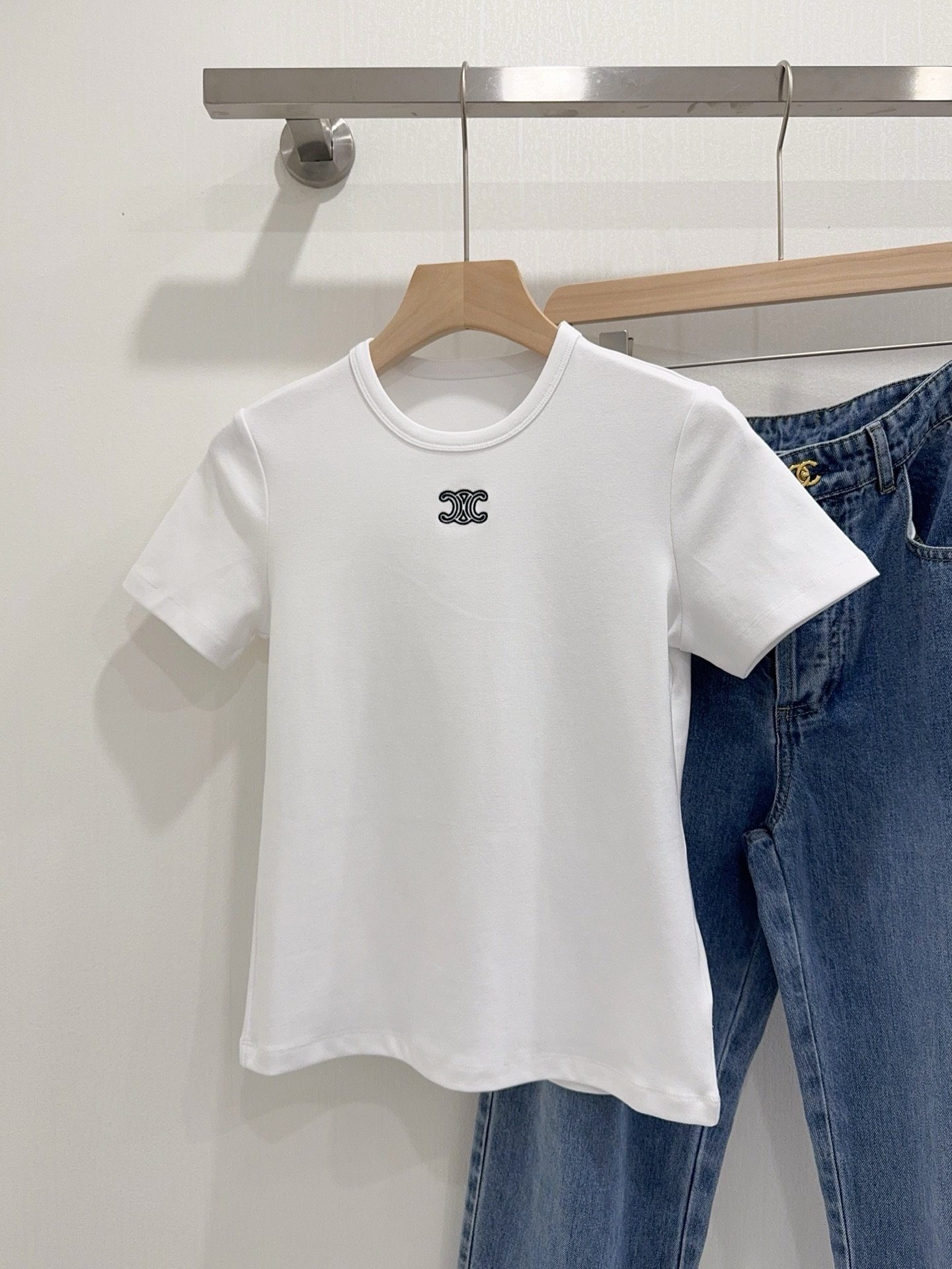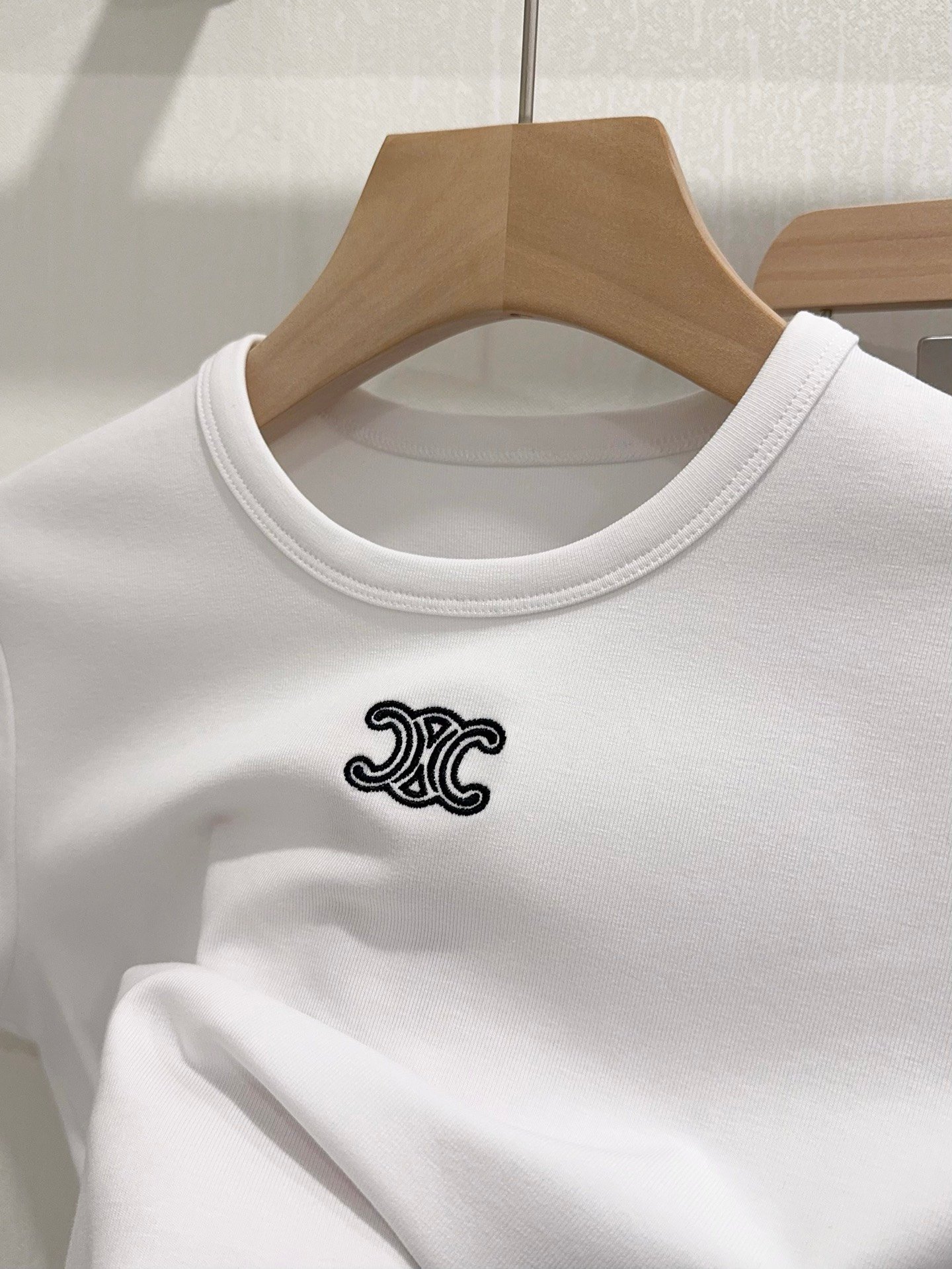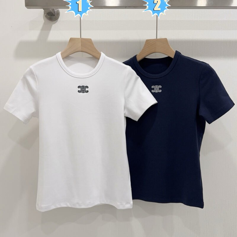 | CELINE Triomphe Embroidered Cotton Plain Knit T-shirt | Mirror quality | Size:S M L | Shipping time:8-16 working days |